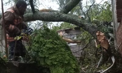 Zitácuaro, Michoacán, 22 de noviembre de 2023. Un fuerte temporal de viento y lluvia provocó la caída de varios árboles sobre dos viviendas en la colonia...
