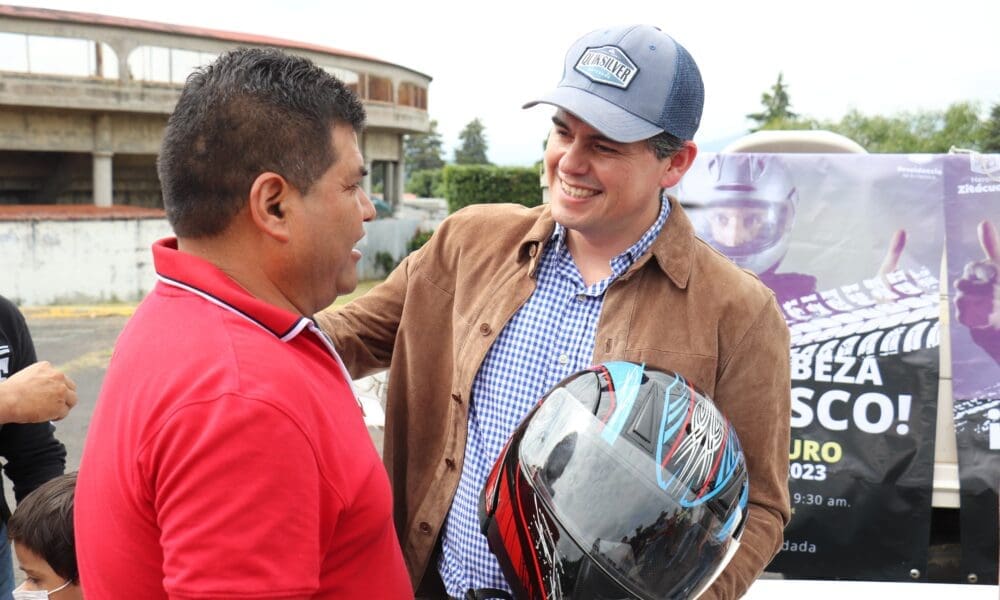 Encabeza Toño Ixtláhuac evento motociclista para promover el uso del casco Zitácuaro, Mich., a 15 de octubre del 2023.- El presidente municipal de Zitácuaro, Toño Ixtláhuac,...