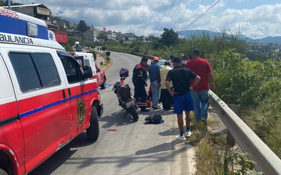 Zitacuaro, Michoacán, 28 de septiembre de 2023.- Tres personas resultaron lesionadas, una de ellas de gravedad, luego de que dos motos chocaran en el puente de...