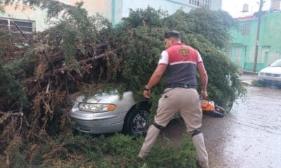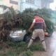 Zitácuaro, Michoacán, 07 de julio de 2023. Un árbol se desplomó sobre un vehículo Buick Century de color gris que se encontraba estacionado en la calle...