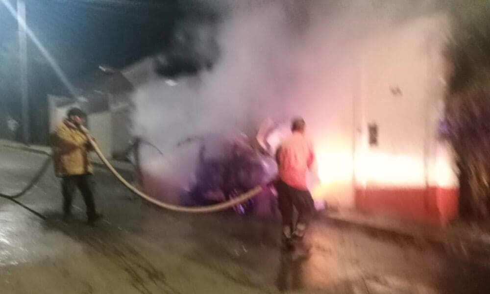 Zitácuaro, Michoacán, 3 de mayo de 2023. Un vehículo Nissan Sentra de color blanco se incendió la madrugada de este miércoles en la calle Lago de...