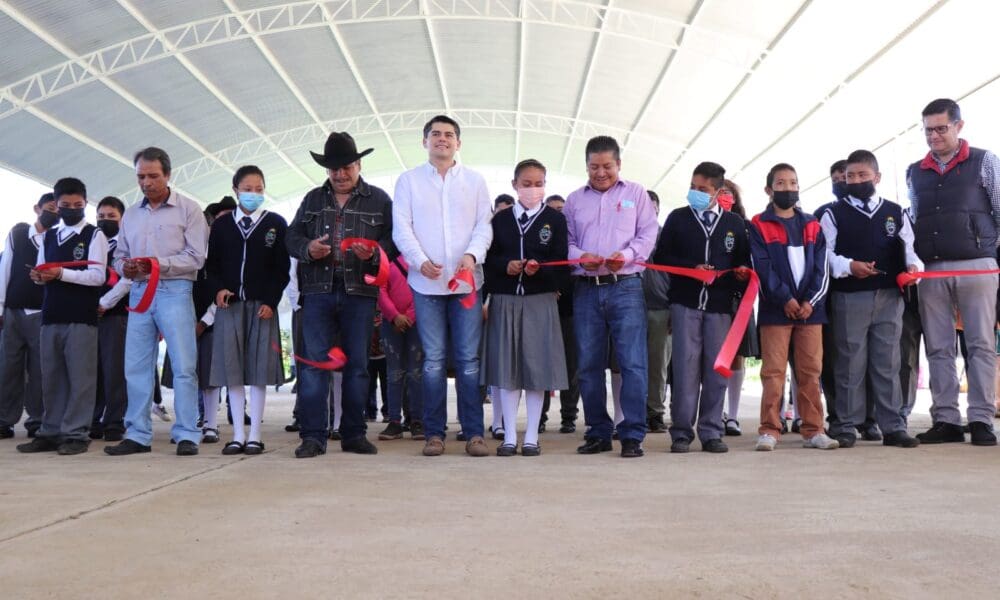 -El alcalde Toño Ixtláhuac inauguró domo escolar en escuela primaria de tenencia Ignacio López Rayón