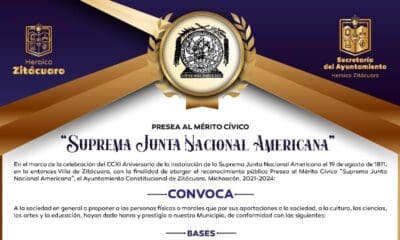 El Ayuntamiento Constitucional de Zitácuaro 2021-2024, abre la convocatoria para elegir al recipiendario de la Presea al Mérito Cívico “Suprema Junta Nacional Americana”, a entregarse el...