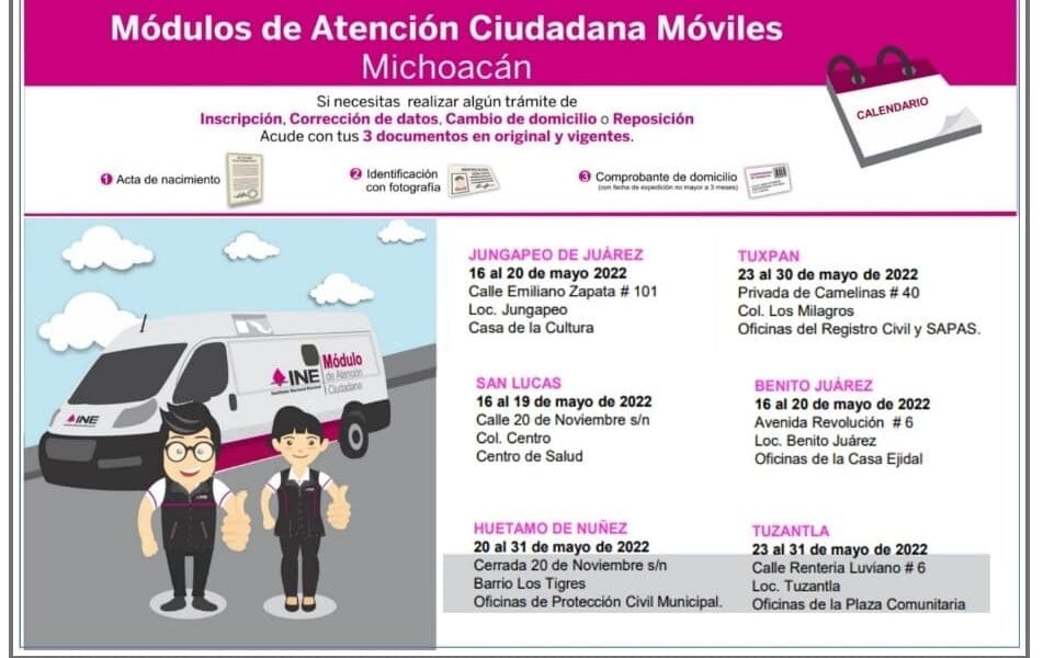 INE Zitácuaro continúa con el horario de atención de lunes a viernes de 08:00 a 15:00 horas en los diferentes módulos de atención ciudadana en el...