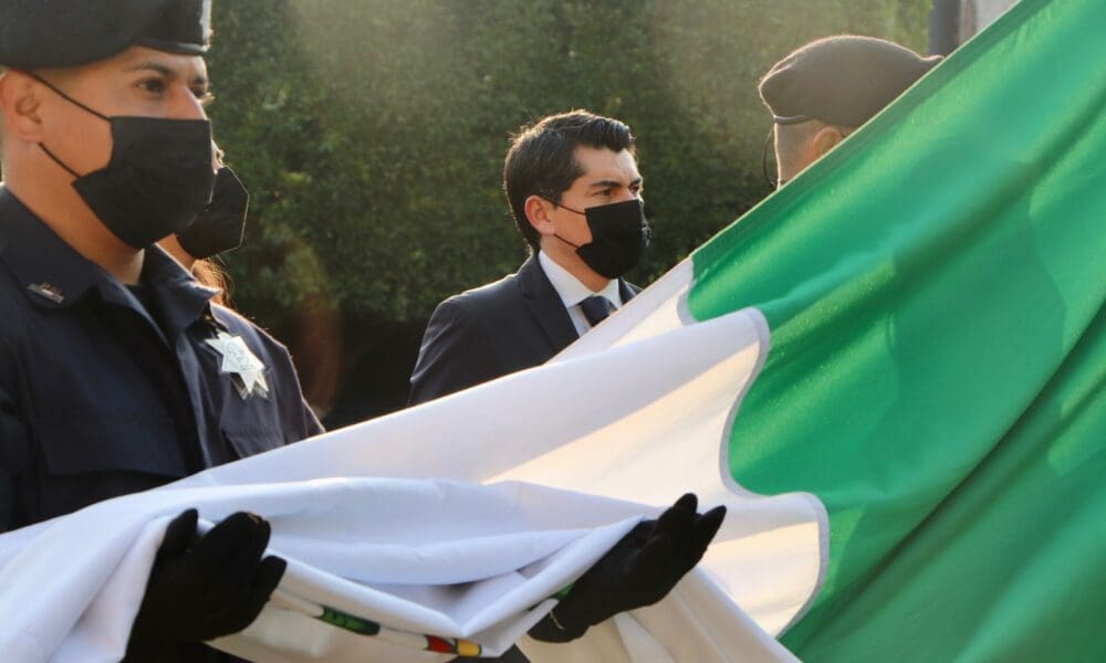 -Encabeza acto cívico e izamiento de Bandera, alcalde @ToñoIxtláhuac, autoridades y alumnos.
