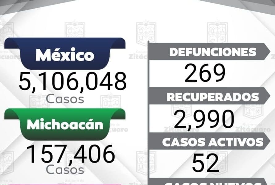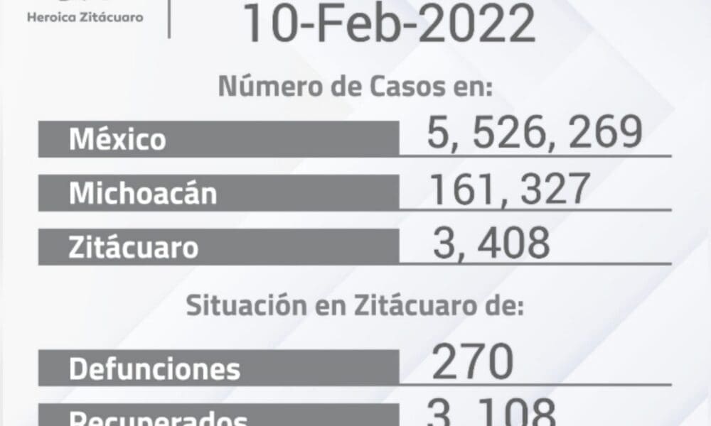 El Municipio de Zitácuaro presenta 12 casos nuevos, con corte al 04 de Febrero de 2022:
