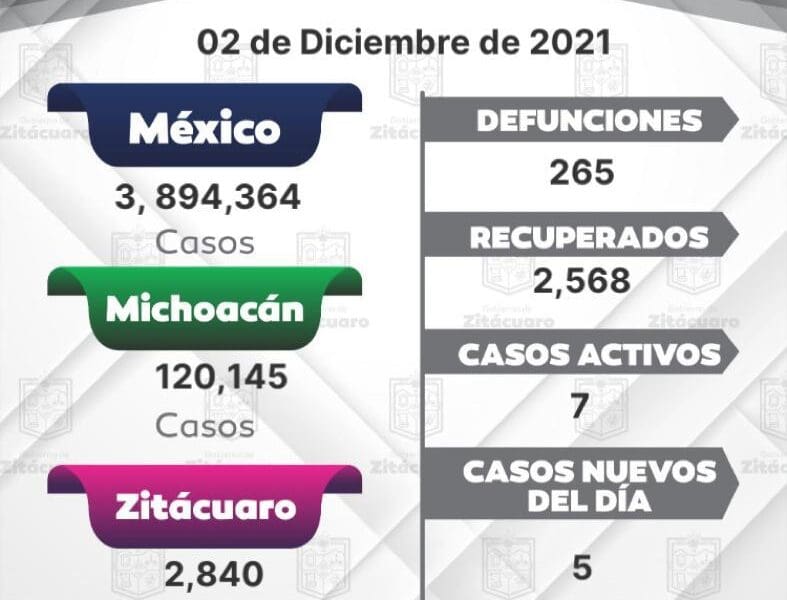 Registra Zitácuaro 5 casos de covid-19 en 24 horas