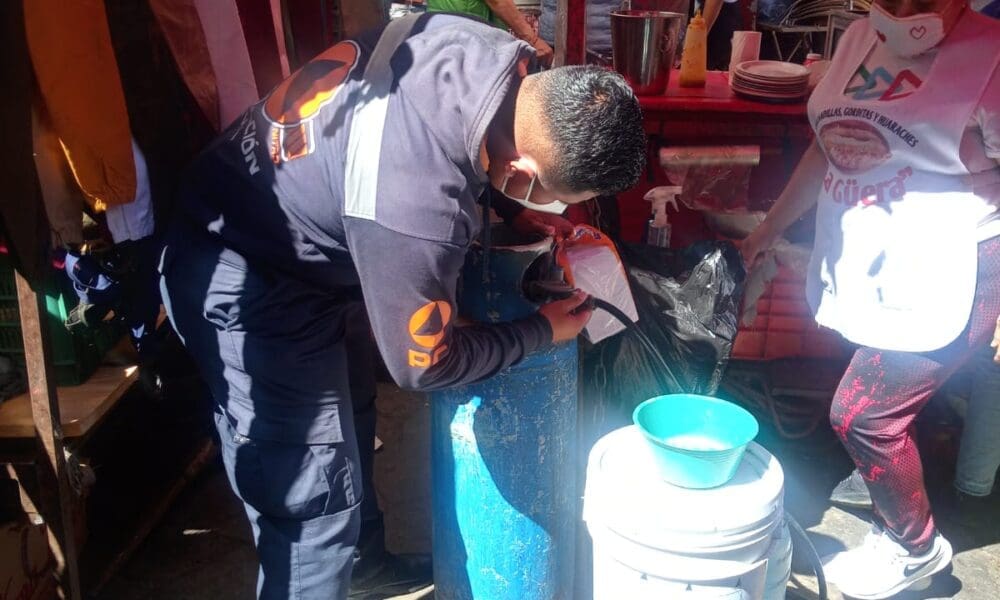 Verifican Bomberos y Protección Civil Municipal condiciones de tanques de gas en puestos de calles céntricas de Zitácuaro.