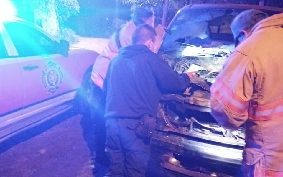 Atienden bomberos incendio de vehículo en Coatepec de Morelos en Zitácuaro