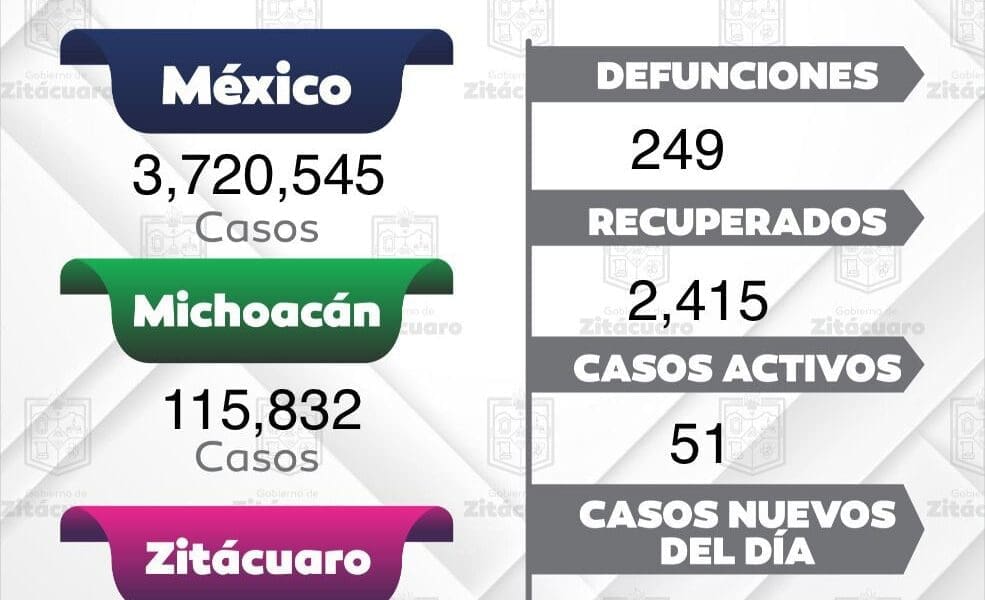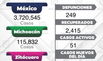 Zitácuaro reporta 10 casos positivos a COVID-19, suman 2,724, y 249 defunciones