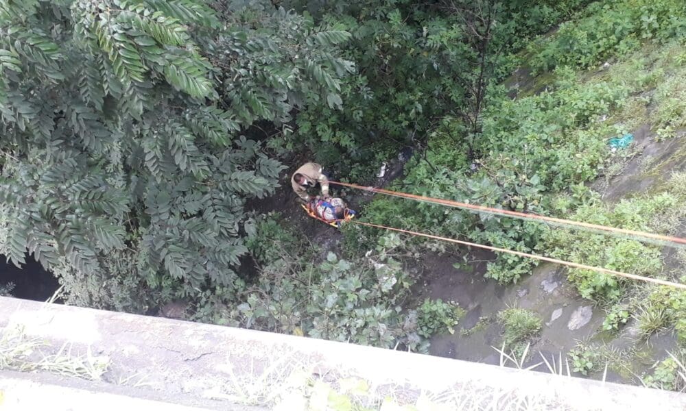 Rescatan viva a una joven de 21 años que cayó al fondo del puente de fierro en Zitácuaro Zitácuaro Michoacán, domingo 5 de septiembre de 2021....