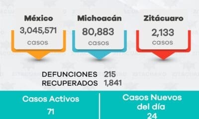 ⚠️ Alerta, Zitácuaro reportó hoy 24 casos positivos COVID-19, hay 71 casos activos y 16 casos sospechosos, hasta el momento se han registrado 215 defunciones relacionadas...