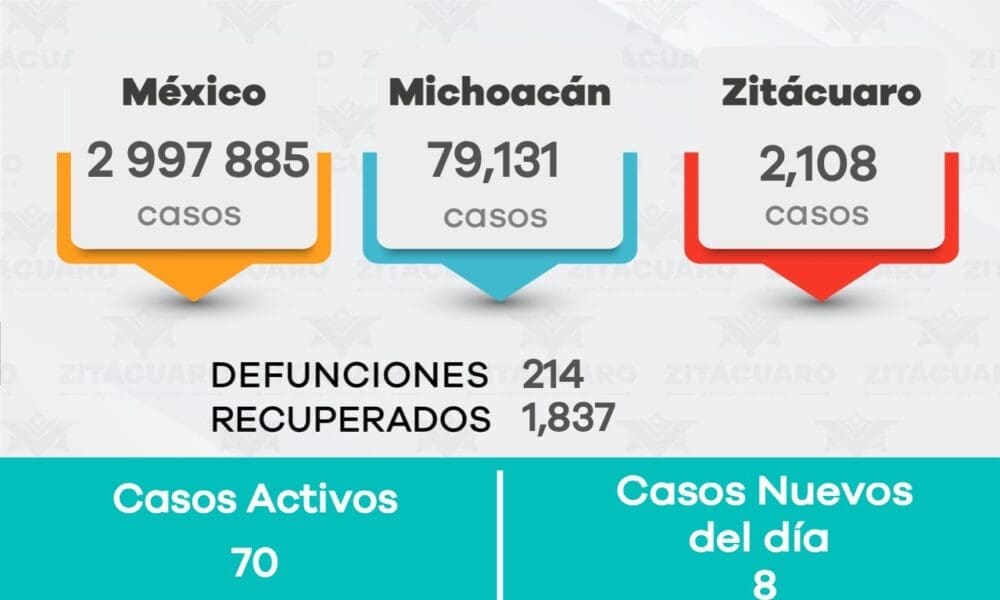 Zitácuaro reporta hoy 58 casos activos por COVID-19, hasta el momento Zitácuaro acumula 215 defunciones asociadas al coronavirus .