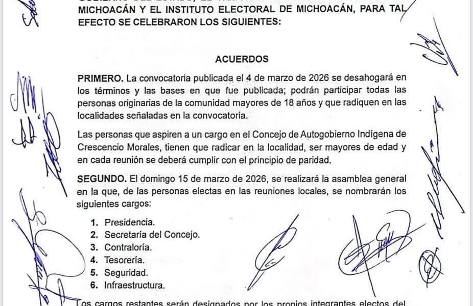 Zitácuaro, Michoacán | 10 de marzo de 2026. Habitantes de la comunidad indígena de Crescencio Morales acordaron realizar el proceso de renovación del Concejo de Autogobierno...
