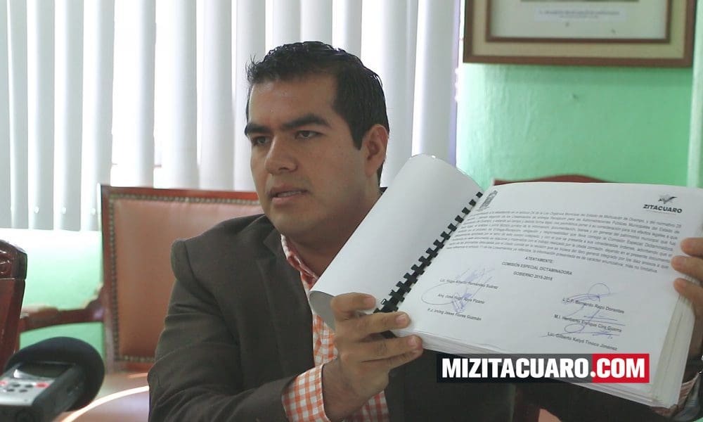 La comisión dictaminadora del proceso de entrega – recepción en Zitácuaro, integrado por el Contralor municipal, Lic. Hugo Alberto Hernández Suárez, el Tesorero, L.C. Bernardo Razo...
