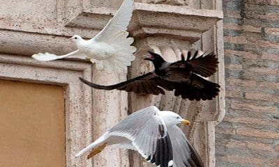 Tras el rezo del Ángelus en la Plaza de San Pedro el papa y dos niños liberaron dos palomas, símbolo de la paz, para abogar por...