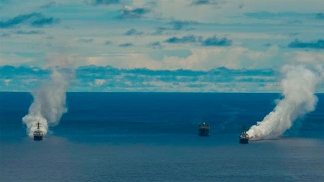 Según el almirante, el experimento demostró que el generador de cortina de humos marino puede ser un elemento clave de la flota para las maniobras pese a la proliferación global de misiles de crucero y misiles balísticos antibuque.