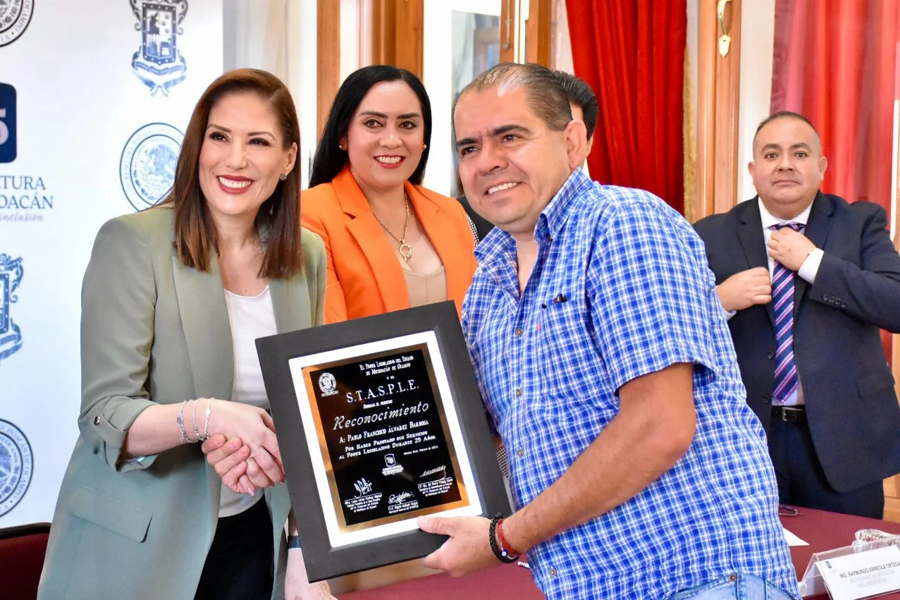 “El éxito de las instituciones se debe a su personal”, afirmó la legisladora en el marco de la celebración del Día del Empleado Estatal, evento en el que se hizo entrega de Reconocimientos por Antigüedad a 51 integrantes del Sindicato de Trabajadores al Servicio del Poder Legislativo del Estado de Michoacán (STASPLE).