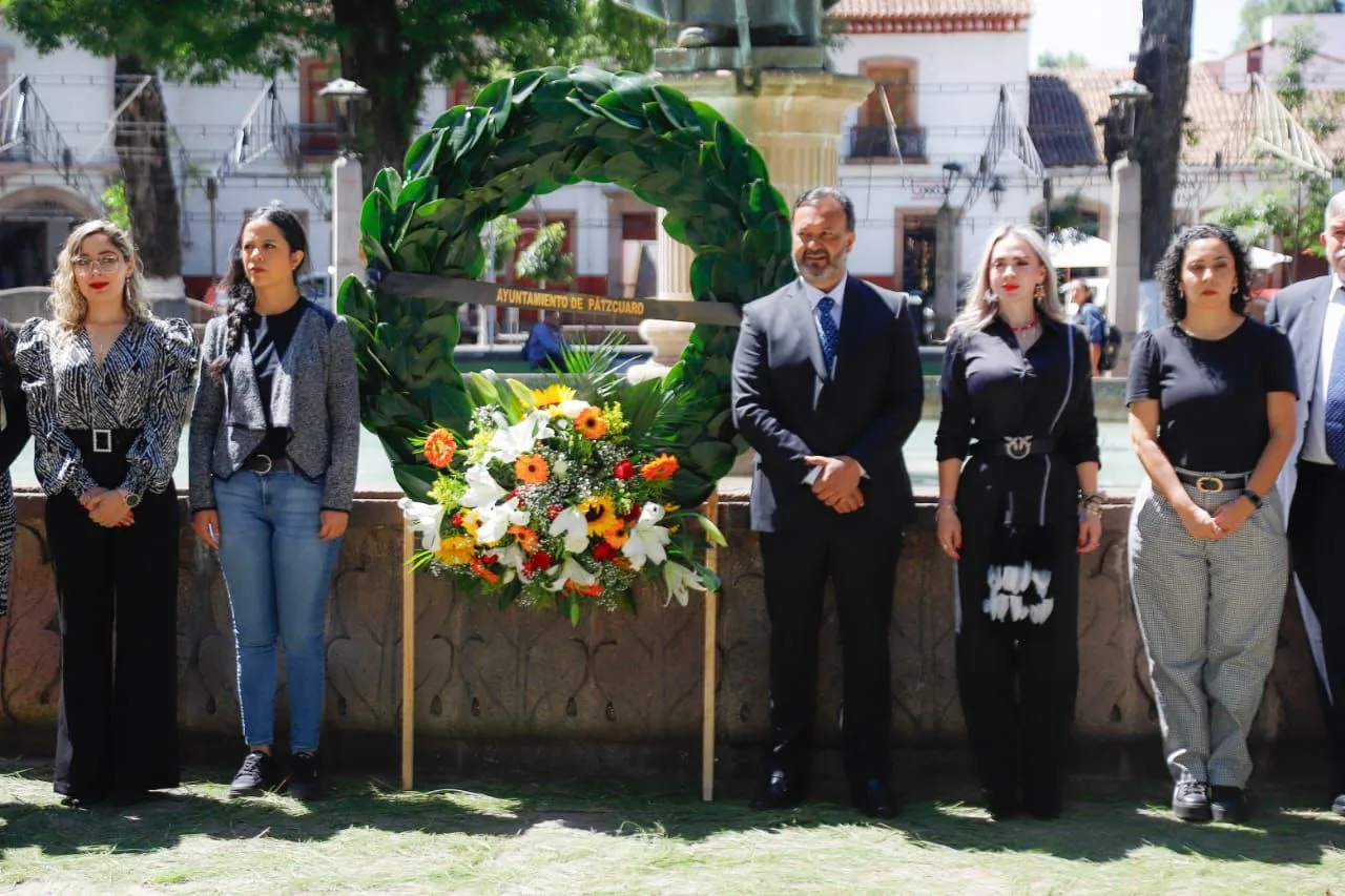 En la plaza que en su nombre rinde tributo al primer Obispo de Michoacán, ubicada en Pátzcuaro, se ofreció el tradicional homenaje, al que asistió la diputada Flores Adame en representación de la 75 Legislatura.