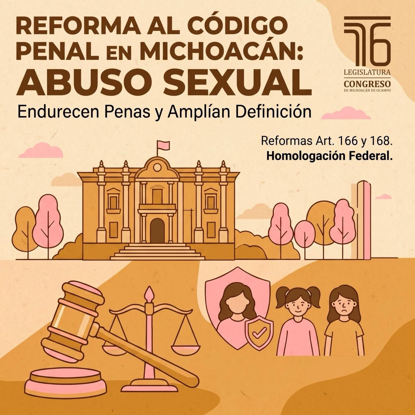 Congreso de Michoacán reforma Código Penal para endurecer penas por abuso sexual y ampliar definición del delito