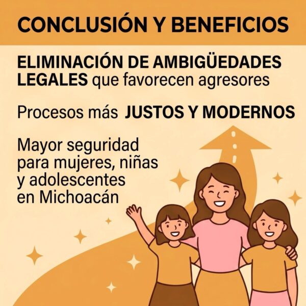 El cuerpo legislativo indicó que las modificaciones buscan garantizar el acceso a la justicia y actuar como mecanismo de prevención del delito mediante sanciones más severas, alineándose con protocolos internacionales de derechos humanos. Tras la aprobación, el documento será enviado al Poder Ejecutivo estatal para su publicación en el Periódico Oficial del Estado de Michoacán. El seguimiento corresponderá a la Fiscalía General del Estado (FGE) y al Poder Judicial.