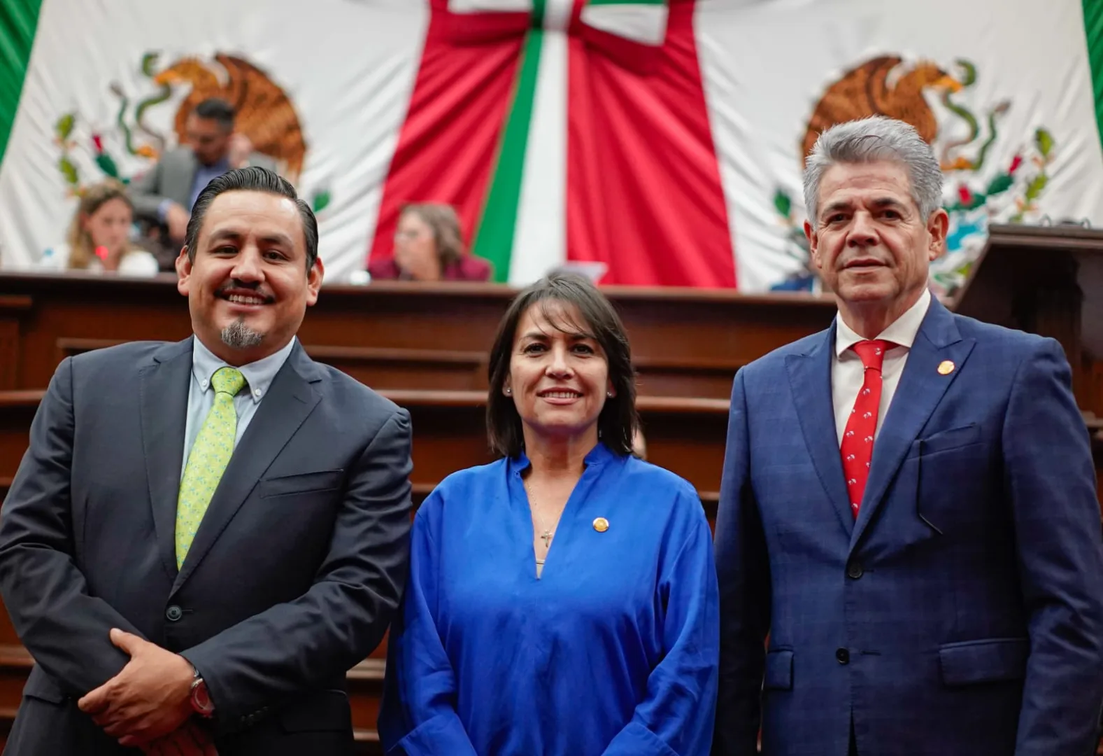Morelia, Michoacán, a 24 de noviembre de 2022.- Con miras a la construcción de un Michoacán incluyente que brinde a los ciudadanos más y mejores oportunidades para el desarrollo, es que las distintas fuerzas políticas en el Congreso del Estado, estamos unidas en la conformación responsable de un presupuesto de egresos 2023; así lo afirmaron los diputados Coordinadores de las fracciones parlamentarias del Congreso michoacano Mónica Lariza Pérez Campos del Partido Acción Nacional (PAN), Jesús Hernández Peña del Partido Revolucionario Institucional (PRI) y Victor Manuel Manriquez Gonzáles del Partido de la Revolución Democrática (PRD).