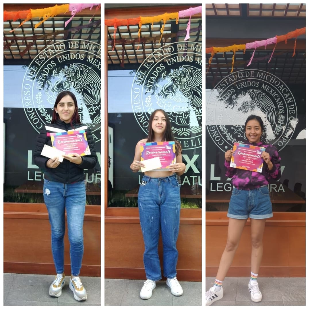 La diputada local celebró la gran respuesta de la población del Distrito de Zitácuaro, especialmente de las y los jóvenes en esta convocatoria, en la que resultaron ganadoras: Magaly García, Mayra García y Mariana González.