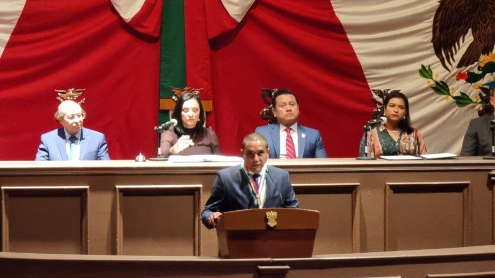 Anta la asistencia de la mayoría de los diputados en la sesión, el magistrado… y el secretario de Gobierno, Carlos Torres Piña como representante del gobernador del estado.