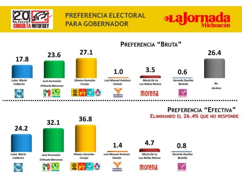 “Silvano ya se despegó y su crecimiento se incrementará en las dos últimas semanas de la campaña; en cambio Ascensión Orihuela ya se estancó y Luisa María ya se colapsó, ellos se pelean ya por el segundo lugar”, destacó Torres Piña.