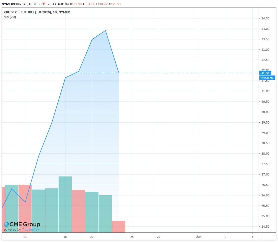 Así, este 20 de abril los futuros para mayo del petróleo estadounidense WTI se desplomaron más del 305 % en una jornada, hasta su mínimo histórico de -37,63 dólares.