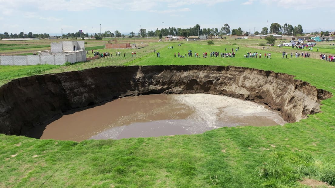 Nuevas fisuras aparecieron en el socavón gigante formado hace menos de dos semanas en un terreno de Zacatepec, en el estado mexicano de Puebla.