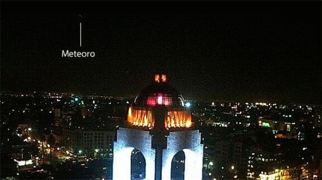 Un meteorito fue grabado por una cámara ubicada en el Monumento a la Revolución cuando surcaba el cielo de Ciudad de México.