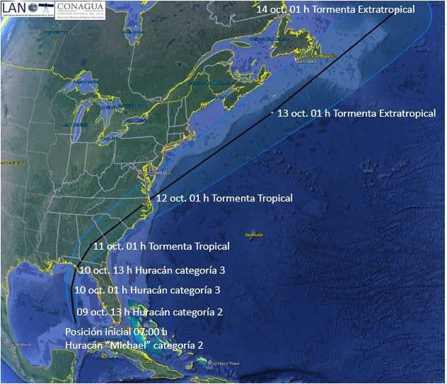 “MICHAEL” con categoría 2 en la escala Saffir-Simpson, continúa desplazandose hacia el nor-noroeste.