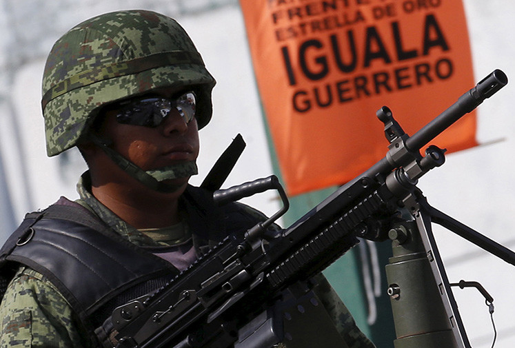 Soldados mexicanos realizan labores de vigilancia durante el Día de la Bandera en Iguala, Guerrero. / Henry Romero / Reuters