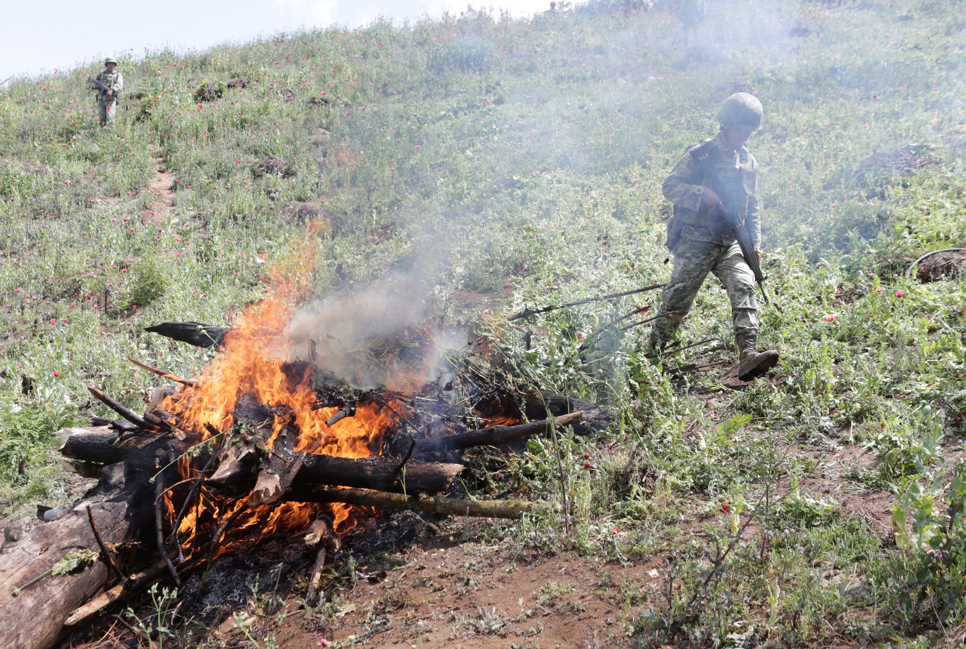Soldados vigilando una zona de plantas de amapola después de ser destruidas durante una operación militar / Henry Romero / Reuters