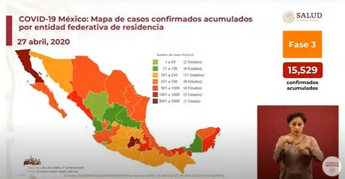 México lleva 1434 muertos 15 mil 529 casos positivos de COVID-19