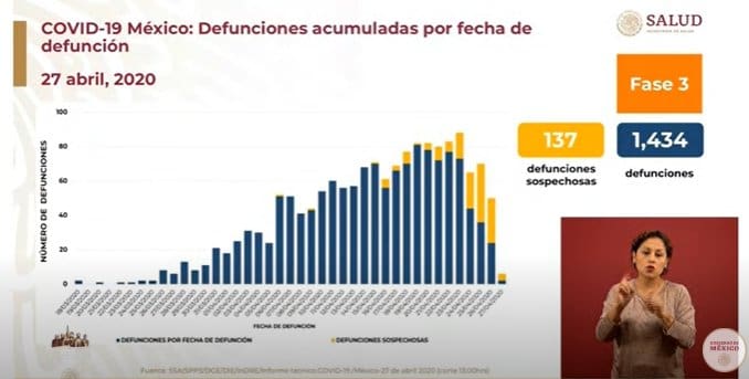 Durante la conferencia diaria de Secretaríade Salud, las autoridades sanitarias informaron que ya son mil 434 los decesos por #COVID19, mientras que los casos confirmados son 15 mil 529