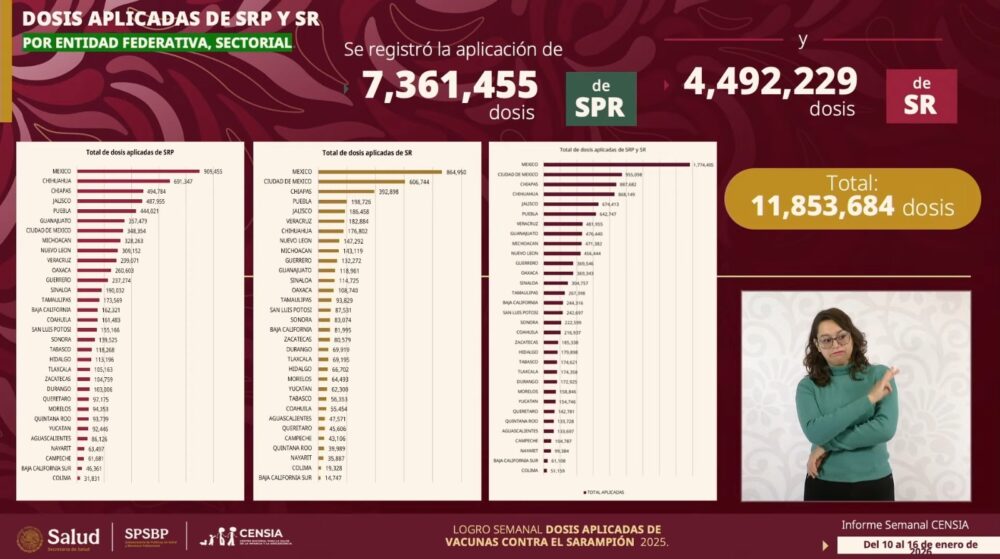La Secretaría de Salud federal confirmó que, al 20 de enero de 2026, México acumula 7,168 casos confirmados de sarampión y 24 defunciones vinculadas al brote epidemiológico iniciado en febrero de 2025.