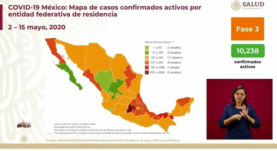 Presentó el mapa y el análisis en orden descendente de los casos confirmados activos por entidad federativa; la #CDMX mantiene la mayor proporción de enfermedad activa.