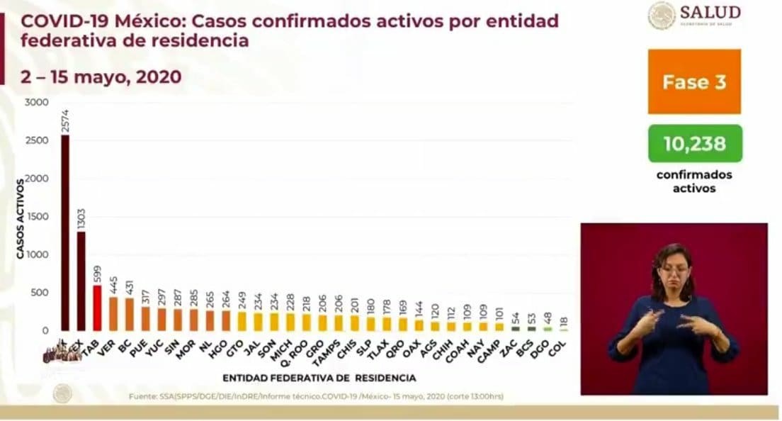 Presentó el panorama de los casos confirmados acumulados por entidad federativa; la #CDMX y el #Edoméx mantienen las mayores cifras.