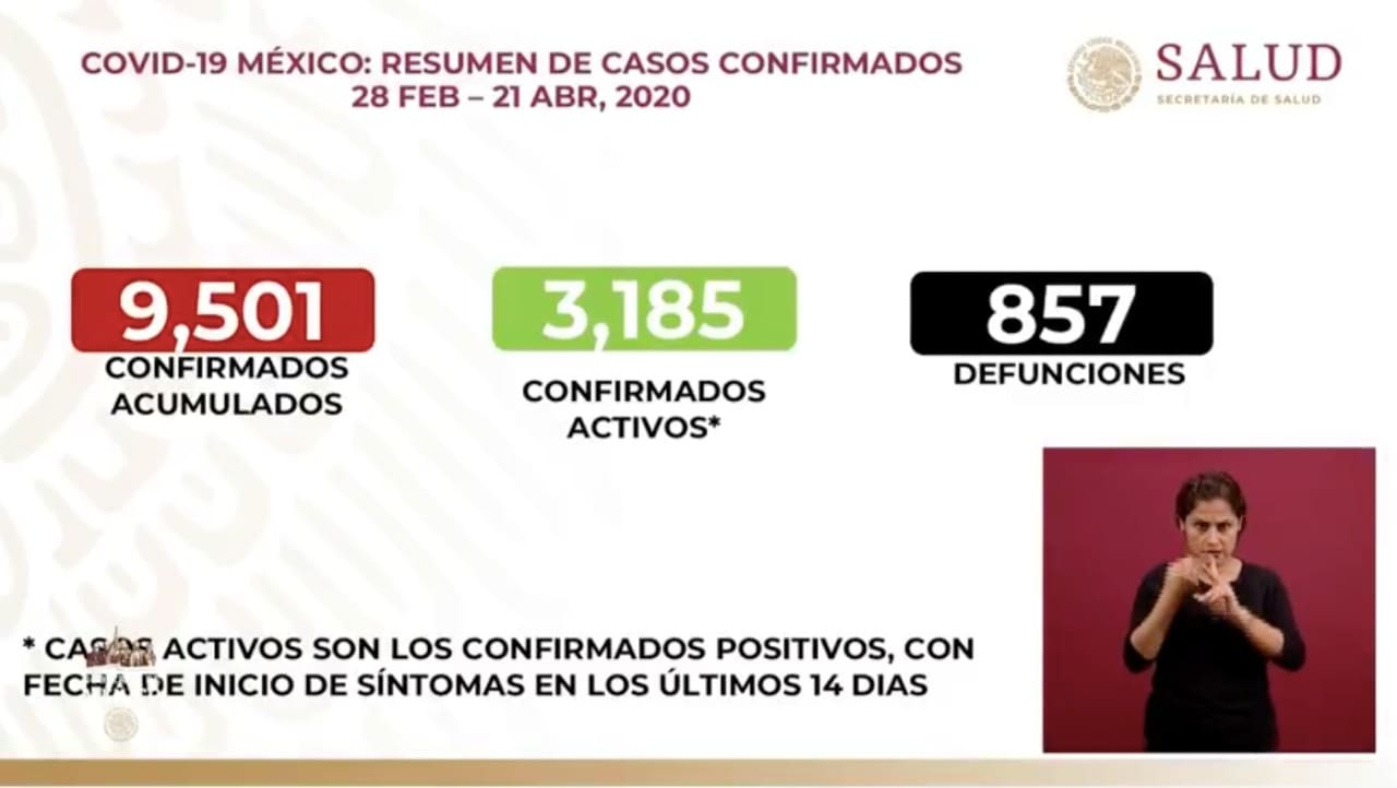 El doctor José Luis Alomía informó que en #México ya se encuentran 9,501 casos confirmados de #coronavirus, sin embargo, son 3,185 los que están activos y se suman 857 defunciones.