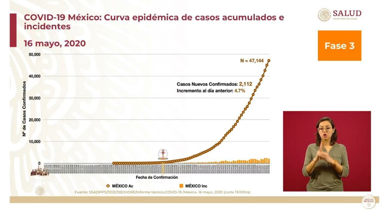 Subrayó que en México hay 47 mil 144 casos acumulados por #coronavirus, destacando la #CDMX, el Valle de México y Baja California.
