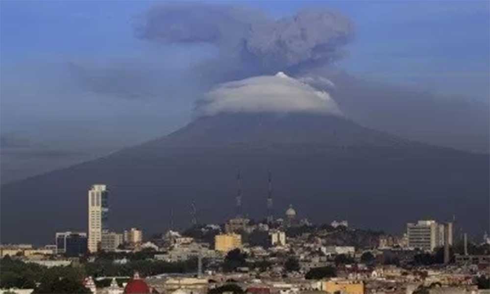Puebla .- La Coordinación General de Protección Civil del Estado de Puebla dio a conocer esta mañana que el volcán Popocatépetl registró emisiones de vapor de agua y gases que se dispersan hacia el Estado de México.