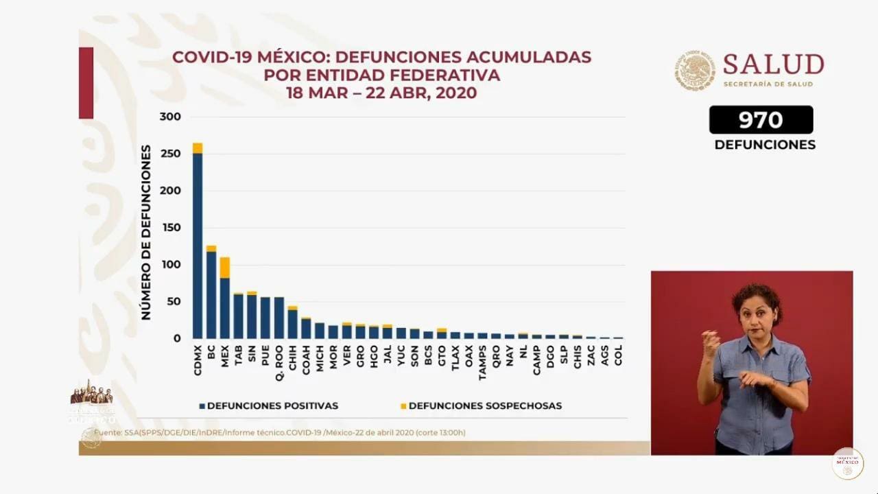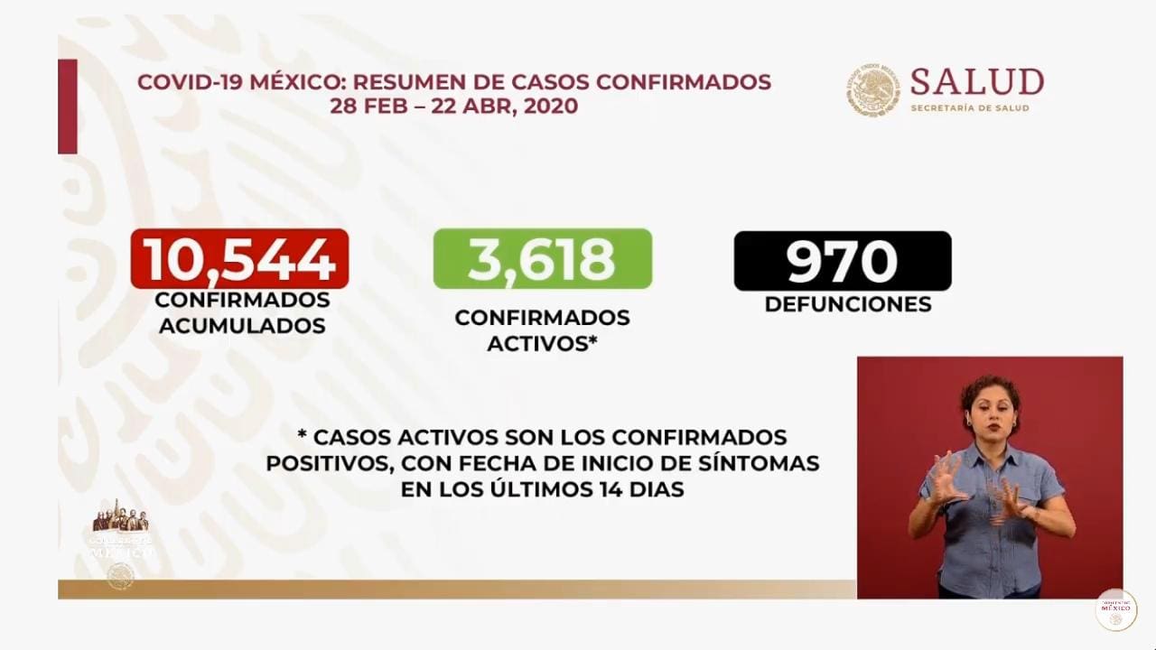 Sube a 970 muertos por COVID-19 en México, y 10544 casos confirmados.