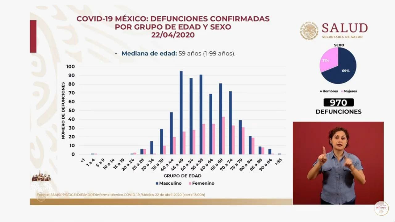 El Subsecretario de Prevención y Promoción de la Salud, presentó el análisis de las 970 defunciones en México por grupo de edad y sexo; los hombres predominan con el 69%.