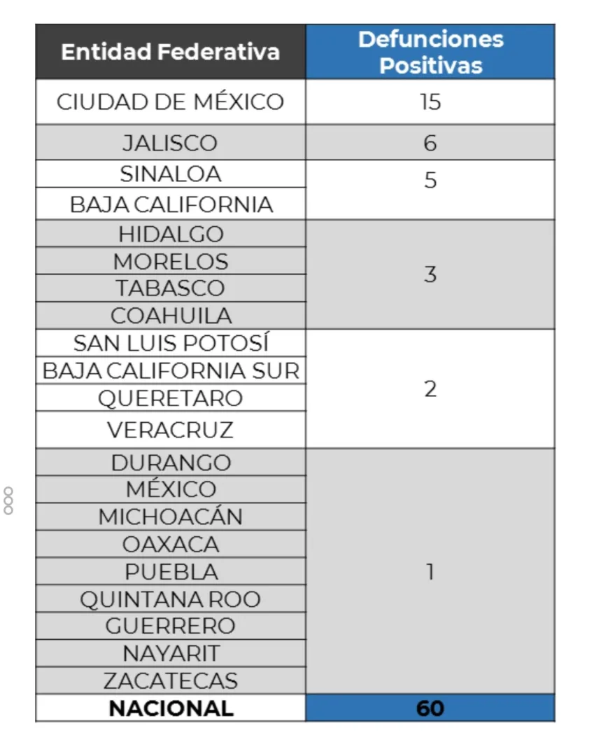 60 muertos y 1,688 casos positivos por COVID-19 en México