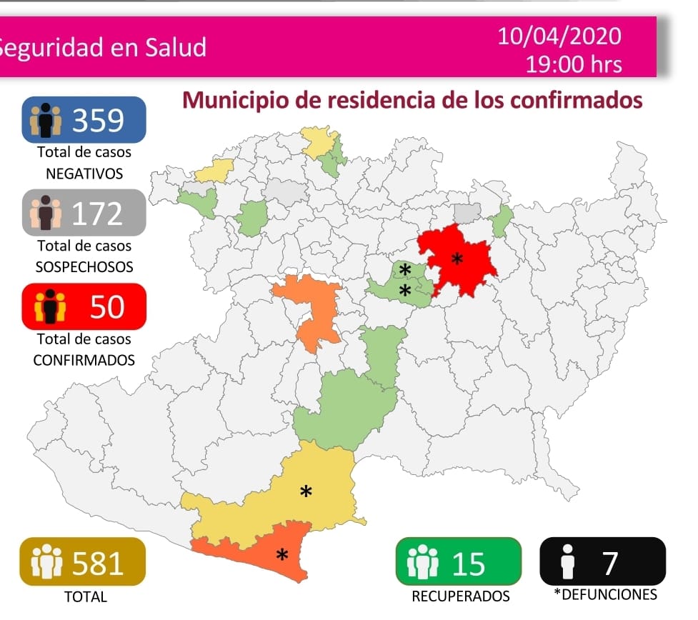 Hasta el día de hoy se han acumulado 50 casos confirmados (3 casos nuevos) y 7 defunciones de pacientes positivos a COVID-19 en la entidad.