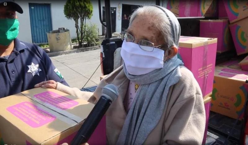 Morelia, Michoacán.- A Julia Cedeño Ruiz, adulta mayor vecina de Morelia, la despensa del Plan Emergente Michoacán Alimenta, programa que implementó el Gobierno de Michoacán en apoyo a los sectores desprotegidos por el COVID-19, le cayó en el momento oportuno.