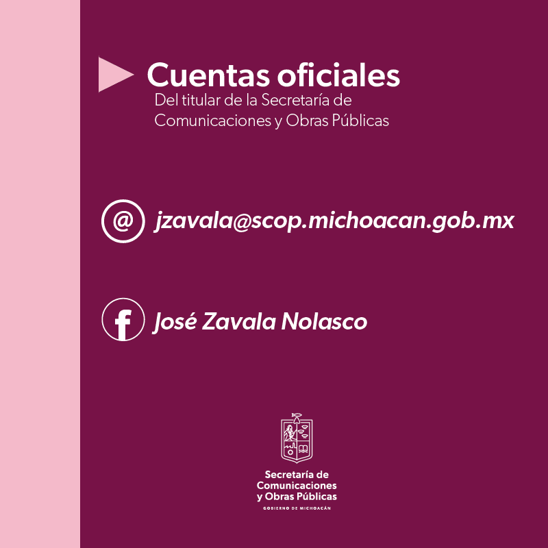 A través de las cuentas verificadas de Facebook y Twitter, Secretaría de Comunicaciones y Obras Públicas de Michoacán y @SCOPMich, respectivamente, la SCOP mantiene los canales oficiales de comunicación social y recepción de denuncias ciudadanas que alerten sobre éste u otros asuntos.