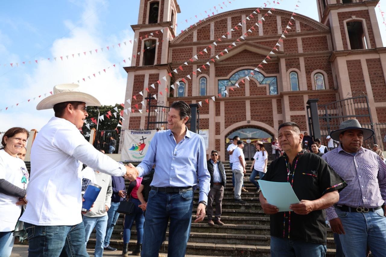 El presidente municipal de Morelia, Alfonso Martínez Alcázar, visitó la comunidad de San Juan Pamatácuaro, en el municipio de Los Reyes, donde invitó a los artesanos de la Meseta Purépecha a participar en las ferias de la capital michoacana para exhibir y comercializar sus productos, fortaleciendo así la promoción de sus creaciones.